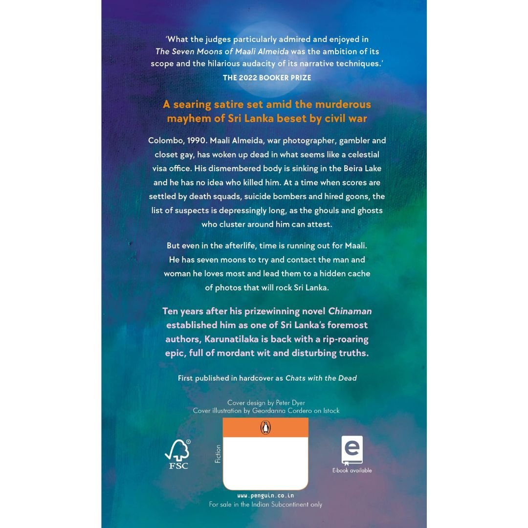 Colombo, 1990. Maali Almeida, war photographer, gambler and closet gay, has woken up dead in what seems like a celestial visa office. His dismembered body is sinking in the Beira Lake and he has no idea who killed him. At a time when scores are settled by death squads, suicide bombers and hired goons, the list of suspects is depressingly long, as the ghouls and ghosts who cluster around him can attest. But even in the afterlife, time is running out for Maali. He has seven moons to try and contact the man and woman he loves most and lead them to a hidden cache of photos that will rock Sri Lanka. Ten years after his prizewinning novel Chinaman established him as one of Sri Lanka’s foremost authors, Karunatilaka is back with a rip-roaring epic, full of mordant wit and disturbing truths.