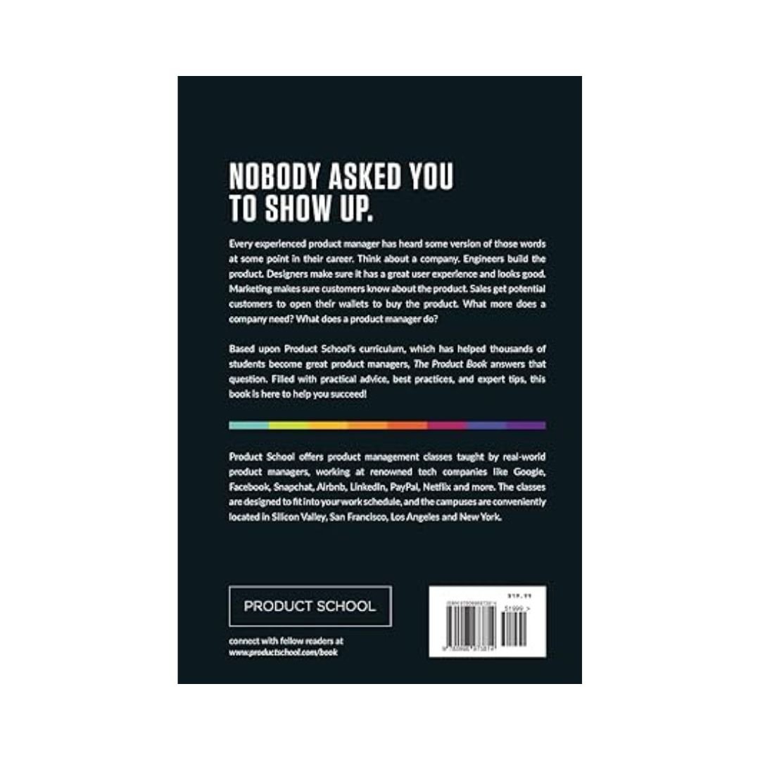 No one asked you to show up.” Every experienced product manager has heard some version of those words at some point in their career. Think about a company. Engineers build the product. Designers make sure it has a great user experience and looks good. Marketing makes sure customers know about the product. Sales get potential customers to open their wallets to buy the product. What more does a company need? What does a product manager do? Based upon Product School’s curriculum, which has helped thousands of students become great product managers, The Product Book answers that question. Filled with practical advice, best practices, and expert tips, this book is here to help you succeed! Product School offers product management classes taught by real-world product managers, working at renowned tech companies like Google, Facebook, Snapchat, Airbnb, LinkedIn, PayPal, Netflix and more. The classes are designed to fit into your work schedule, and the campuses are conveniently located in Silicon Valley, San Francisco, Los Angeles and New York.